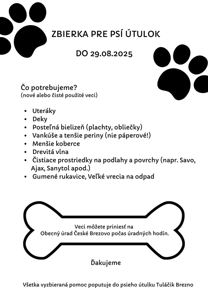 Zbierka potrvá do 29. augusta. Veci môžete nosiť každý deň v pracovnej dobe na Obecný úrad České Brezovo.